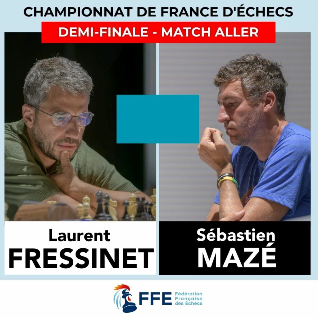 Laurent Fressinet, double champion de France et recordman des sélections en équipe de France, va tenter de se qualifier pour la finale et vise un troisième titre de champion de France. En face de lui, Sébastien Mazé, capitaine de l’Équipe de France, est à la recherche de son premier titre ! Un duel entre deux grands maîtres très expérimentés à suivre à partir de 14h30 !