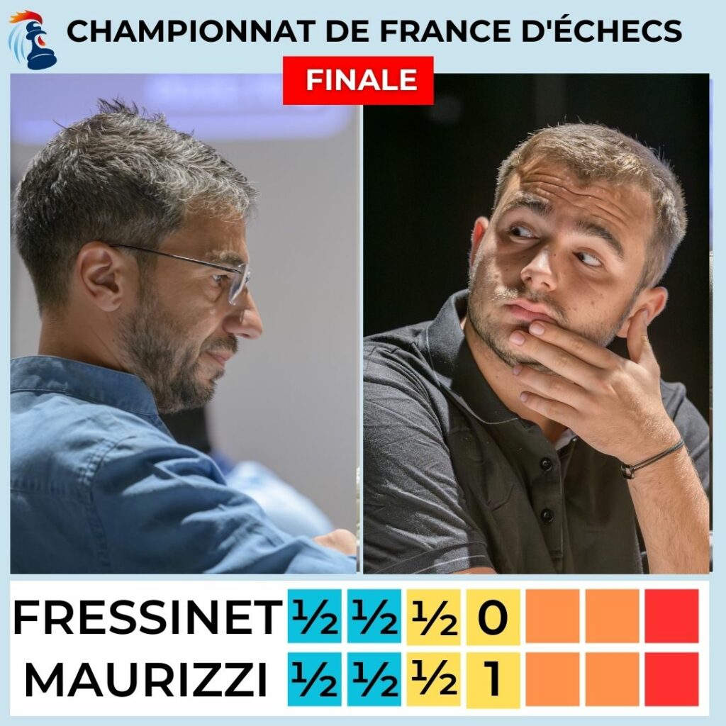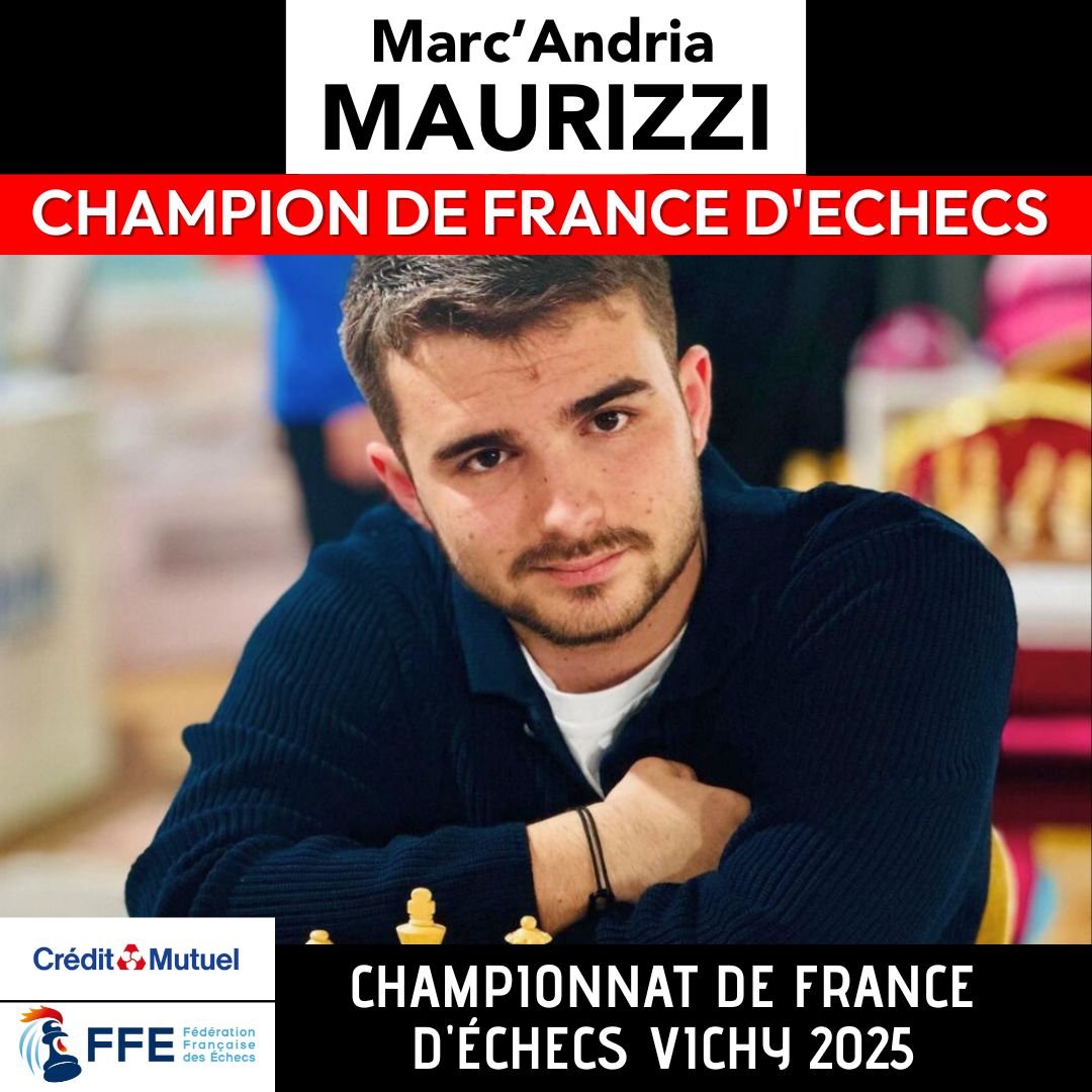 Marc’Andria Maurizzi est le nouveau champion de France d’Échecs ! Il remporte la deuxième partie rapide des départages contre Laurent Fressinet, vice-champion de France.