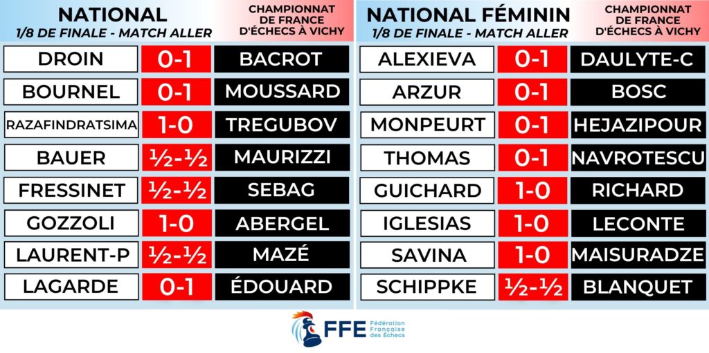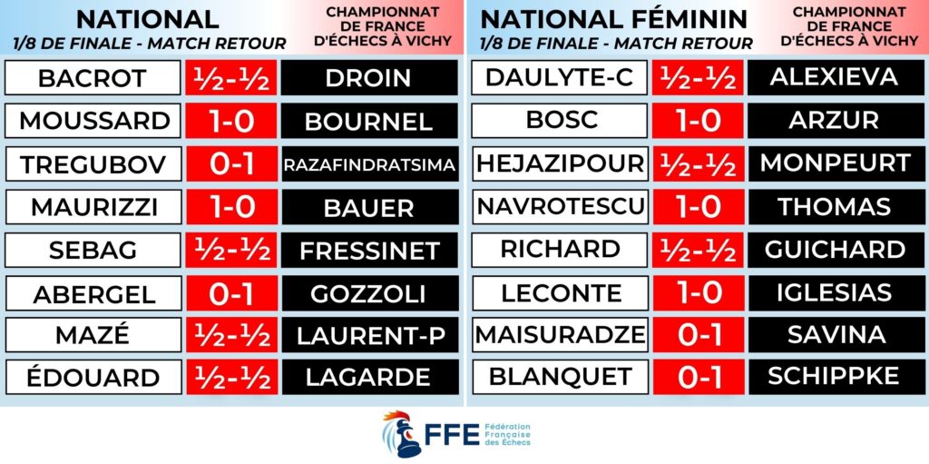 Le replay des huitièmes de finale est disponible, avec les commentaires de l’équipe d’Apprendre les Échecs, est disponible.
